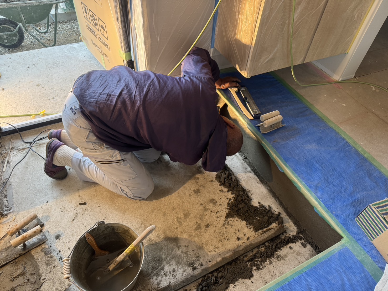 玄関土間のモルタル仕上げを行っています✨