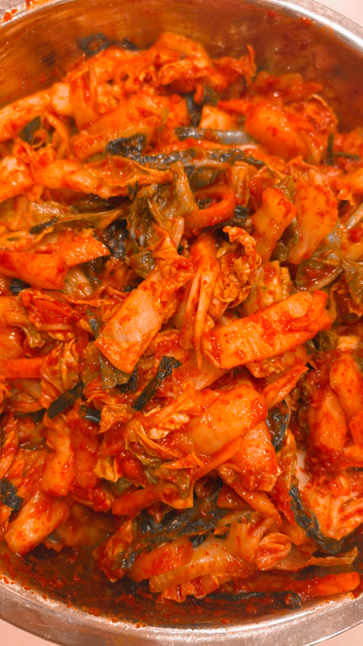 先日実家で採れた白菜で漬けた自家製キムチ♡